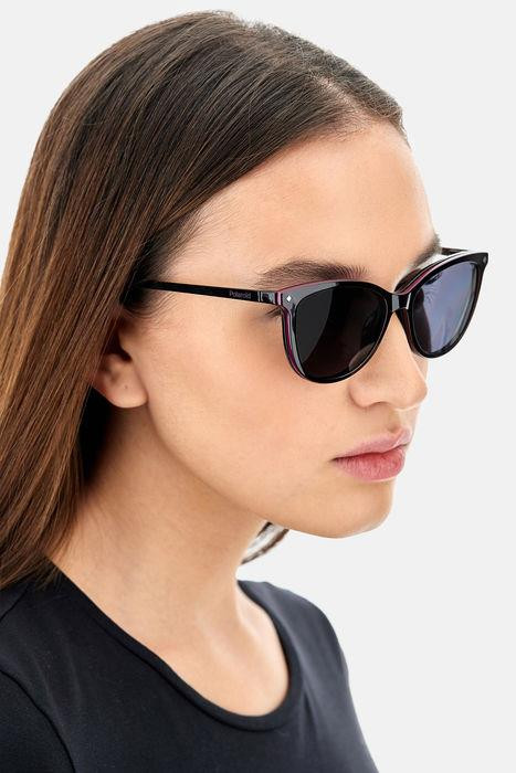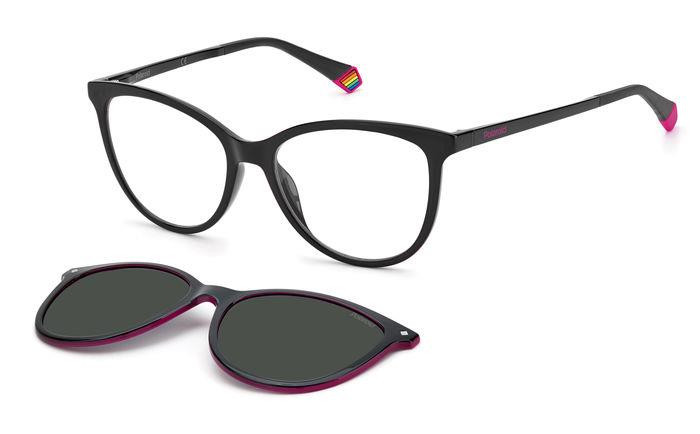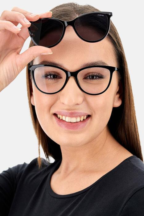 A Polaroid ezeket a szemüvegeket dinamikus, energikus nőknek ajánlja. A harmonikus macskaszem formájú előlaphoz pattintható bronz polarizált napszemüveg tartozik, stratégiailag összehangolva a befecskendezett keretek havanna motívumával. A karcsú szárak lenyűgözően könnyűek, a kényelmes gumibetétek pedig stabilitást biztosítanak, amelyet örömteli szivárványos díszítés emel ki a végvégeken.