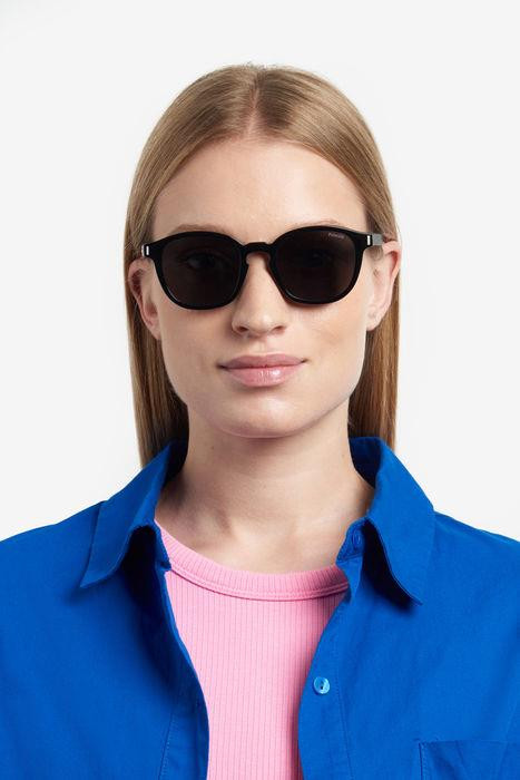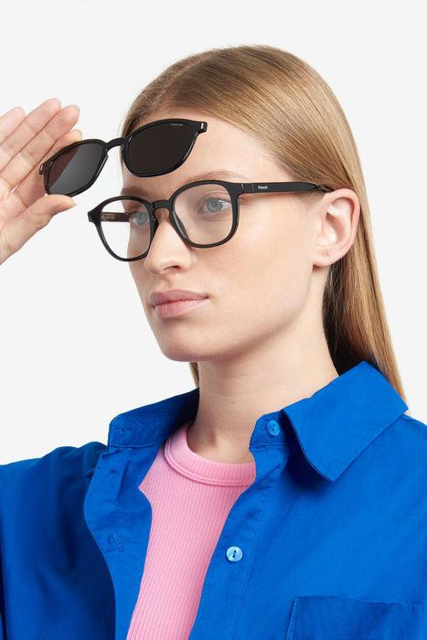 Az uniszex Polaroid szemüveg kerek eleje mágneses klipekhez illeszkedik, amelyek könnyedén napszemüvegré változtatják a keretet. Az ökopoliamidból, egy természetes eredetű műanyagból készült keret a márka fenntartható döntéseit tükrözi. A Polaroid jellegzetes átlátszó részlete jelzi a halánték hegyeit.