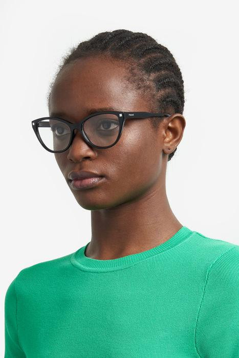 Ezek a Polaroid szemüvegek a márka fenntartható választását képviselik, acetát-propionát előlappal és bio-acetátból készült szárral, amely cellulózból, azaz pamutból és fapépből származik. Ez a női macskaszem-stílus a kollekció jellegzetes részleteivel rendelkezik, beleértve a négyzet alakú fémszegecseket az elején és a kontraszt színű halántékvégeket.