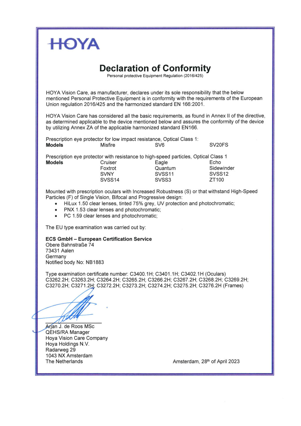 DIOPTRIÁS VÉDŐSZEMÜVEGEK, EN 166 szabvány Megfelelőségi nyilatkozattal.