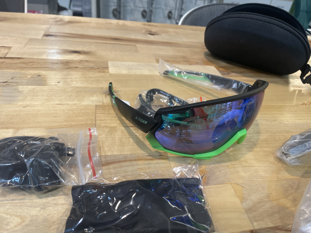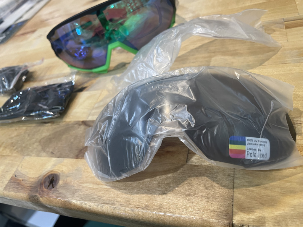 3 cserélhető lencsével ( az egyik polar) kemény tokkal gumi pánttal és kendővel .
